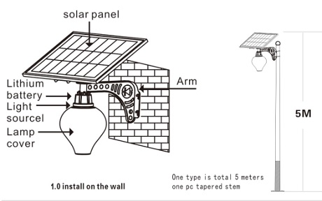 We sell well designed solar garden Lighting Kits in which the battery, lamp and controller are integrated. They can be mountedeither on the wall or on a pole in the garden. The solar panel is connected to the rest of the kit during installation. Switching is automatic and thus no human intervention is needed.